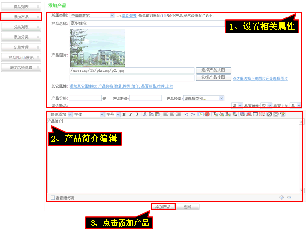 6、产品FLASH属性可以设置